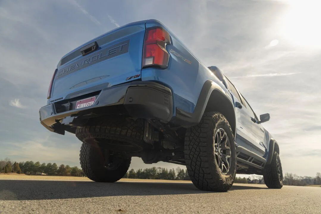 This Flowmaster® FlowFX® cat-back exhaust system is for the 2023-2024 GM Colorado/Canyon with the 2.7-liter turbo engine. This system is manufactured using durable 409 stainless steel tubing and features single 3.00-inch mandrel bent pipes for better exhaust gas flow. A FlowFX "straight-through" muffler is used for an aggressive to moderate sound level and maximum performance. Maximum increases on the dyno revealed 14 hp and 15 lb-ft at the rear wheels. This system exits out the rear of the truck high up under the bumper for the best ground clearance possible. The system uses all the existing factory hanger locations and includes installation instructions and all necessary hardware for an easy installation that you can do at home. Backed by Flowmaster's Lifetime Limited Warranty.