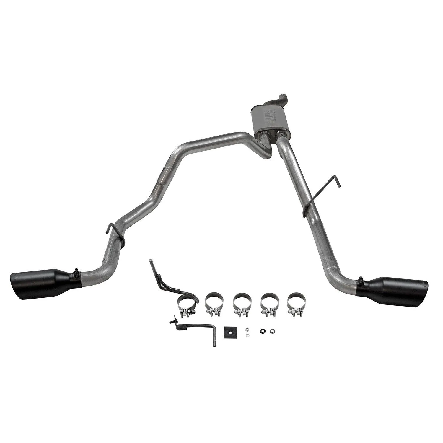 This Flowmaster® Flow FX® cat-back exhaust system for the 2005-2019 Nissan Frontier trucks with the 4.0-liter V6 engine is manufactured using durable 409 stainless steel throughout and features dual 2.50-inch mandrel bent pipes for better exhaust gas flow, and a Flow FX "straight-through" muffler is used for a moderate sound level and maximum performance. Maximum increases on the dyno revealed +8 hp and +6 lb-ft at the rear wheels. This system exits out both sides, behind the rear wheels with 4.50-inch black ceramic tips for added style and a custom look. The system uses all the existing factory hanger locations and includes installation instructions and all necessary hardware for an easy installation that you can do at home. Backed by Flowmaster's Lifetime Limited Warranty.