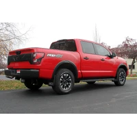This Flowmaster® FlowFX® cat-back exhaust system for the 2017-2024 Nissan Titan with the 5.6-liter engine is manufactured using durable 409 stainless steel throughout and features 3.00 to dual 2.50-inch mandrel bent pipes for better exhaust gas flow. A FlowFX "straight-through" muffler is used for an aggressive to moderate sound level and maximum performance. Maximum increases on the dyno revealed +11 hp and +13 lb-ft at the rear wheels. This system exits out the same side, in front of the rear wheel on the passenger with dual 4.00-inch black ceramic tips for added style and a custom look. The system uses all the existing factory hanger locations and includes installation instructions and all necessary hardware for an easy installation that you can do at home. Fits short wheelbase only (139.8-inch). Backed by Flowmaster's Lifetime Limited Warranty.