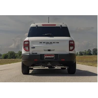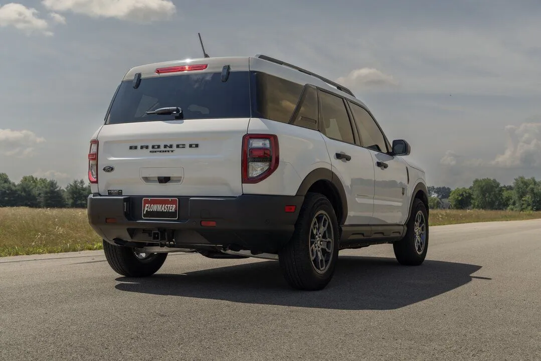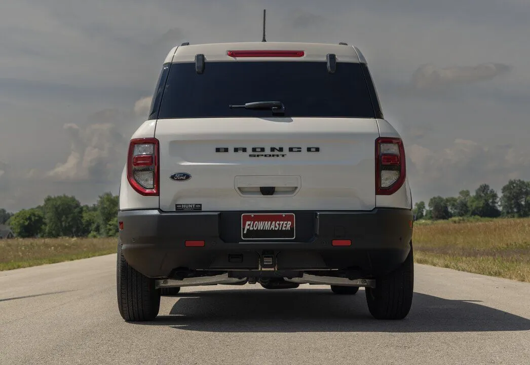 This Flowmaster® FlowFX® axle-back exhaust system for the 2021-2024 Ford Bronco Sport with the 1.5 and 2.0-liter engine is manufactured using durable 409 stainless steel throughout and features 2.50-inch mandrel bent pipes for better exhaust gas flow, and a FlowFX series muffler is used for a moderate sound level and maximum performance. This system exits dual out the rear, with dual 3.00-inch black ceramic-coated tips for added style and a custom look. The system uses all the existing factory hanger locations and includes installation instructions and all necessary hardware for an easy installation that you can do at home. Backed by Flowmaster's Lifetime Limited Warranty.