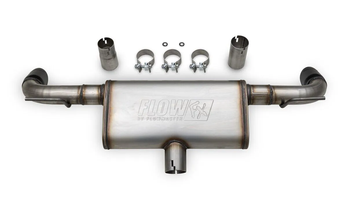 • FlowFX series performance muffler delivers a deep, moderate performance tone and improves exhaust flow
