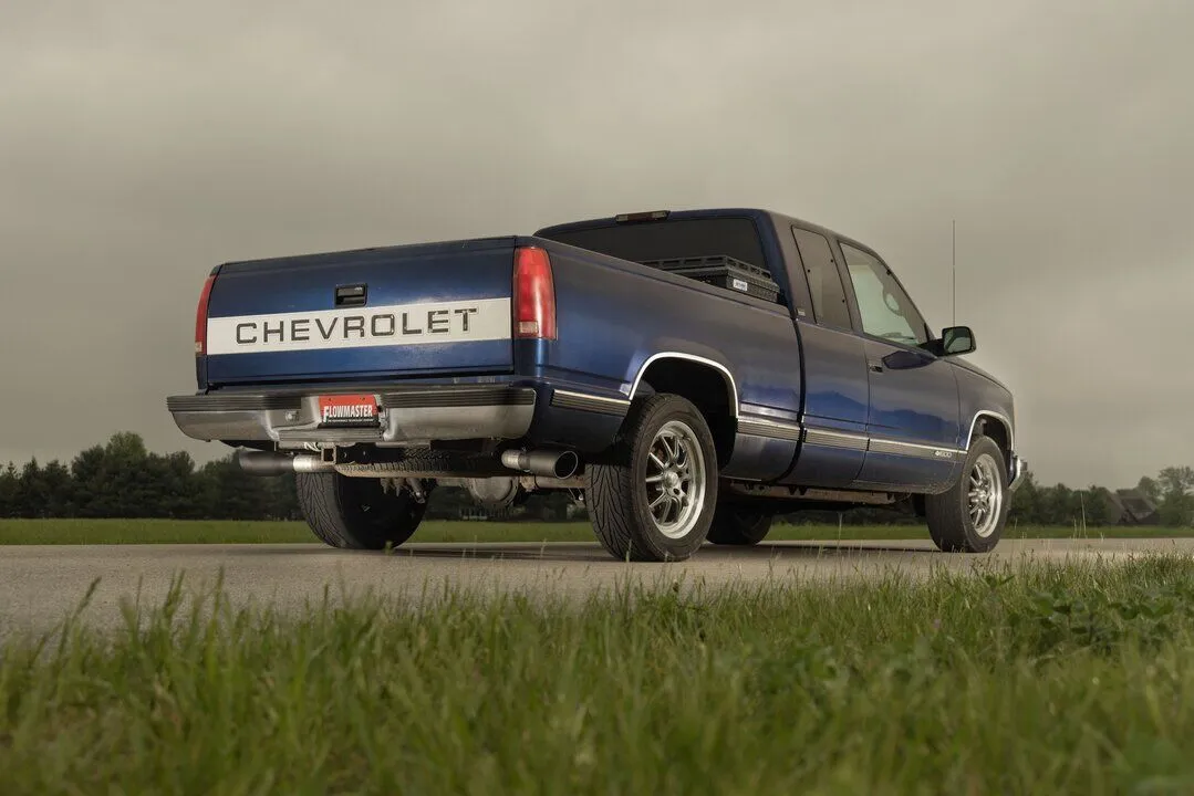 This Flowmaster® FlowFX cat-back exhaust system is for the 1994-1995 GM 1500/2500 LD trucks with the 5.0 and 5.7-liter engines. This system is manufactured using durable 409 stainless steel tubing and is mandrel bent for better exhaust gas flow. A FlowFX Series muffler is used for an improved sound level and maximum performance. This system uses dual 4.5-inch black ceramic coated tips that exit dual out the side of the truck. The system uses all the existing factory hanger locations and includes installation instructions and all necessary hardware for an easy installation that you can do at home. This system fits all single cab and extended cab models in both 2 and 4 wheel drive. Backed by Flowmaster's Lifetime Limited Warranty.