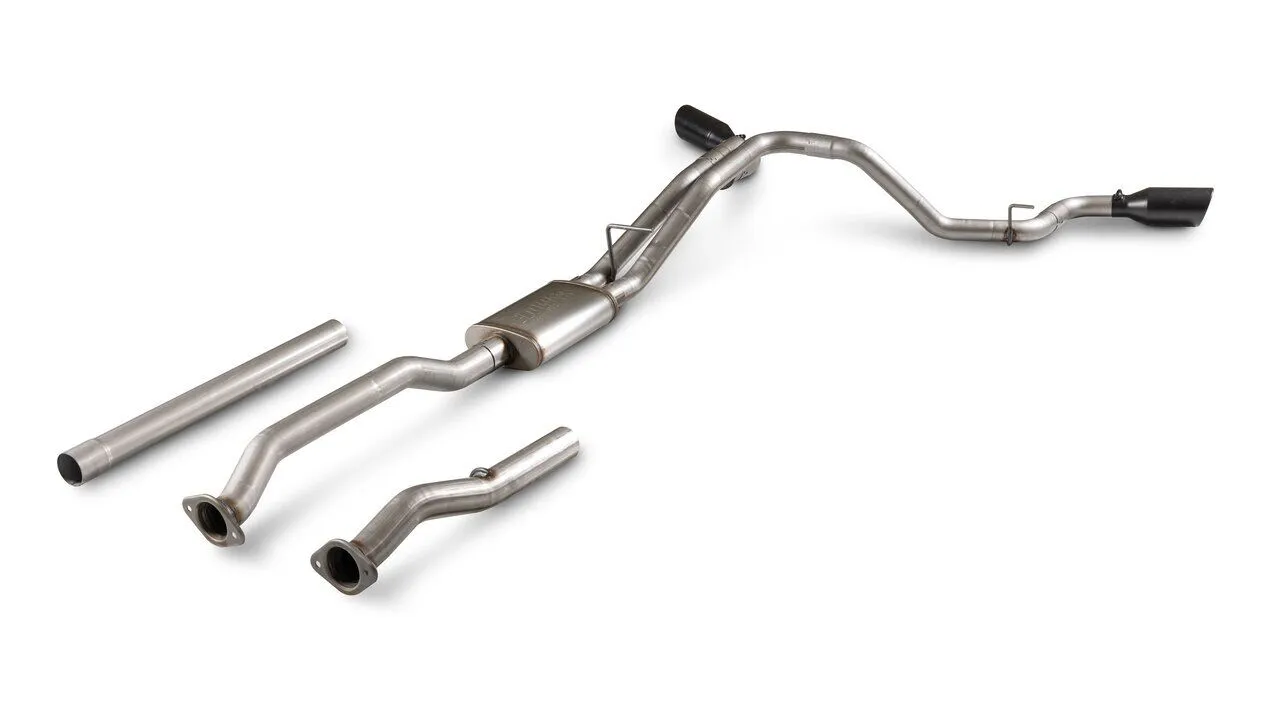 • Dual 4.5-inch black ceramic coated stainless steal tips add a custom look to the vehicle