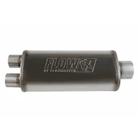 Flowmaster's Flow FX series mufflers deliver a moderate performance tone for the enthusiast looking for an exhaust note that is different from the "chambered" muffler sound. The interior features a large 3.50-inch "straight-through" stainless steel perforated core, surrounded with high-temperature sound absorption materials delivering a deep traditional mellow tone. The internal flow design is reversible, so the muffler can be installed in either direction to best suit the vehicle application and offsets needed. Features include fully MIG-welded "bright" 409 stainless steel construction with the Flow FX logo embossed on both sides of the case. The Flow FX line of mufflers is perfect for the person looking for a show quality performance muffler at an economical price point and in a compact sized case.
