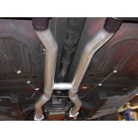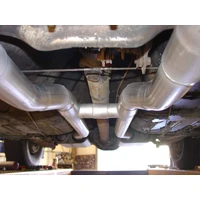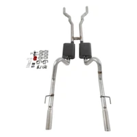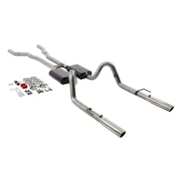 Submit A RequestFor the person who is looking for a true dual Crossmember-Back exhaust system with an moderate to aggressive exhaust tone. With an easy fit in mind, these systems are constructed from 16-gauge mandrel-bent stainless steel tubing with a built-in H-pipe crossover, a pair of specially selected Super 44 Series mufflers and includes all hangers and hardware necessary for installation. This system fits through the factory rear valance exhaust cutouts and includes a pair of 3.00-inch polished stainless steel tips. The American Thunder systems deliver a moderate to aggressive interior and exterior tone and are best suited to the enthusiast who wants their performance to be heard. Like all Flowmaster exhaust systems, the benefits include improved throttle response, power and mileage. If you prefer aluminized steel construction, check out optional system# 17281. Notes: Does Not fit convertibles or cars with staggered shocks. Does Not include header reducer cones or downpipes for factory manifolds.