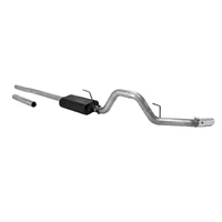 The Force II® system is the perfect choice for the person who wants a subtle custom appearance with all the benefits and sound that a Flowmaster® single cat-back exhaust provides. The system delivers a moderate exterior tone and mild to moderate interior tone over the factory exhaust and ideally suited for customers looking for efficiency improvements without a lot of noise. This Force II system is a bolt-on system and bumps the tubing size up to a 3-inch mandrel-bent stainless steel tubing flowing into the improved muffler design of the Super 50™ Series muffler over the stock exhaust. The mandrel-bent tailpipe uses the factory hanger locations making installation a breeze and is finished off with a 3.50-inch polished stainless steel tip. The Force II system is ideal for daily drivers and especially light towing applications such as boats and RV's. Designed for an easy fit, these systems include all necessary parts and hardware for easy installation you can do at home. Stainless Steel exhaust systems are covered by our Lifetime Limited Warranty. Note: This Force II system is also available in Aluminized steel with a 3-year Limited Warranty. Check out part# 17403 for the Aluminized steel option. Fits both 2/4 wheel drive models and all wheelbases.