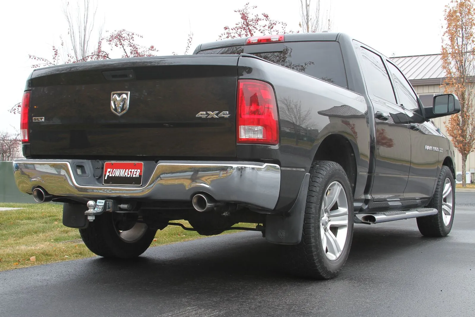 Wake up the power and performance of your 5.7L Hemi-powered 2009-2024* (*classic body) RAM 1500, and 2009-2013 4.7L models, with the American Thunder® Cat-back exhaust system. The system is fully constructed from 16-gauge mandrel-bent stainless steel tubing flowing into a 50 Series HD™ performance muffler with minimal interior drone in the cab, but with a moderately deep aggressive exterior tone. This custom system features dual 2.50-inch mandrel-bent tailpipes finished off with a pair of large 4.00-inch polished stainless steel tips exiting straight out the back under the rear bumper for a muscular look. The system includes all necessary parts and hardware required for an easy installation that you can do at home. Covered with our Lifetime Limited Warranty.