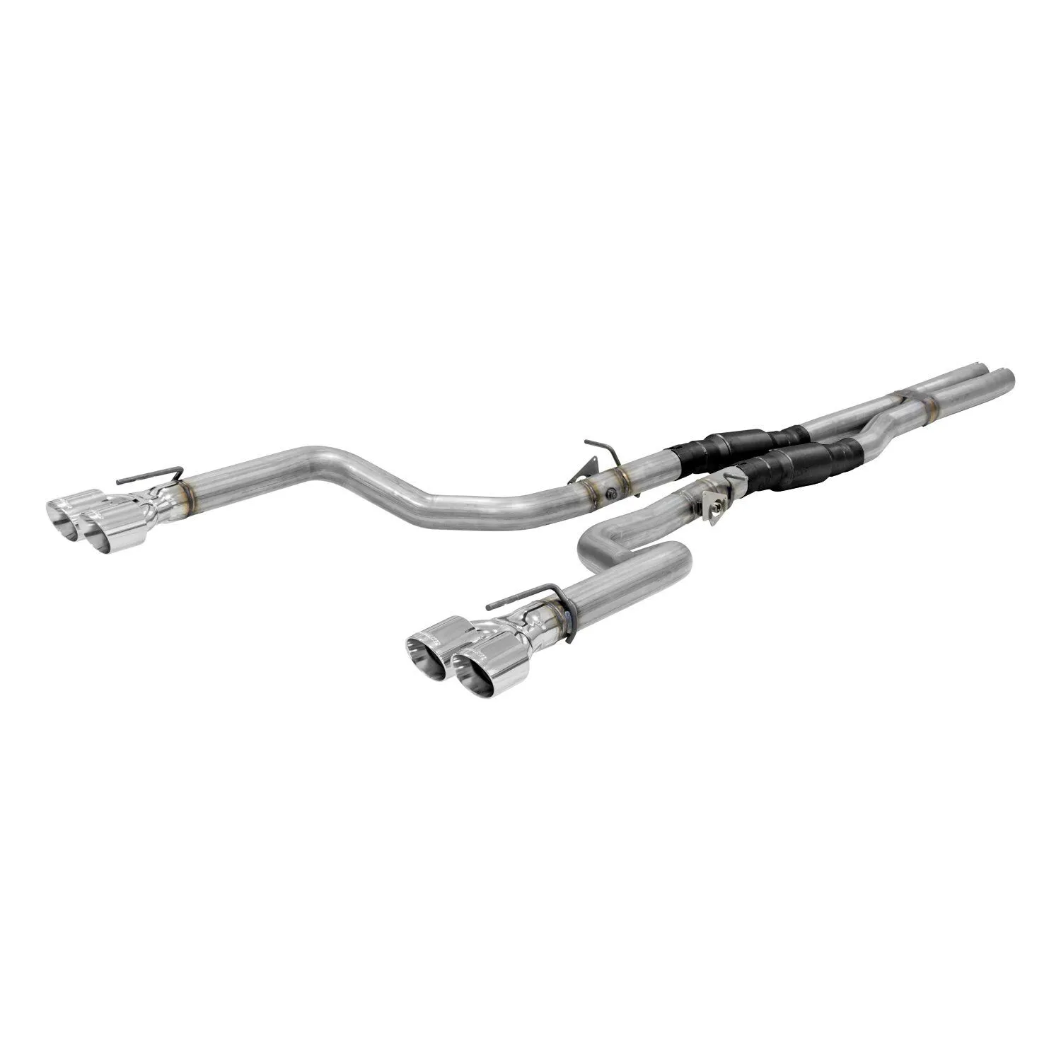 This Flowmaster® Outlaw Cat-back exhaust system is designed for the 2015-2023 Dodge Challenger SRT 392 and R/T Scat Pack models with the 6.4L engine, the SRT Hellcat with 6.2L engine and the 2017-2021 R/T with the 5.7L engine. The system is perfect for the person looking for a very aggressive exterior sound level when hard on the gas while maintaining a moderate tone when cruising. System features include dual 3.00-inch mandrel-bent stainless steel tubing flowing into our exclusive Scavenger Series® X-pipe for a deep unique sound while making maximum power. The tubing then runs into a pair of race-proven Outlaw® Series mufflers and the tailpipes include high-quality active exhaust valves ready for your factory actuators. The system is then finished off with quad 3.50-inch 304 stainless steel embossed tips for a muscular look. The system is covered by our Lifetime Limited Warranty and includes all necessary parts and hardware for an easy installation you can do at home.