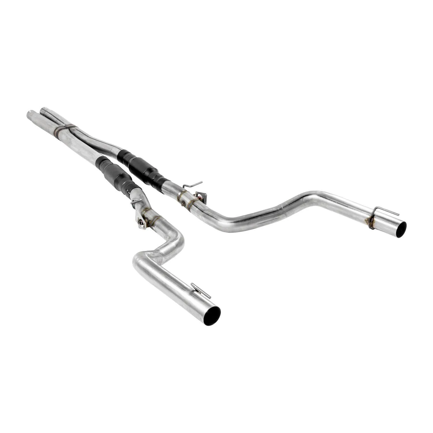 This Outlaw® Cat-back exhaust system is designed for the 2017-2023 Dodge Charger R/T and Daytona models with the 5.7L Hemi engine and is perfect for the person looking for aggressive exterior and interior sound levels. System features include dual 3.00-inch mandrel bent 409S stainless steel tubing connecting to our exclusive Scavenger Series® X-pipe for maximum performance and a deep unique sound. The system then flows into a pair of race-proven Outlaw® Series mufflers expelling spent gases and sound through the large 3.00-inch tailpipes. The tailpipes include a high-quality pair of Active Exhaust Valves waiting to be paired with your vehicles factory actuators. The tailpipe then exits in the stock location through the factory exhaust bezels. The system includes all necessary parts, hardware, easy to follow installation instructions and is covered by our Lifetime Limited Warranty. Notes: This system is for cars with factory exhaust bezels in the rear bumper. Check out system #817845 if your car has factory round cutouts in the rear bumper.