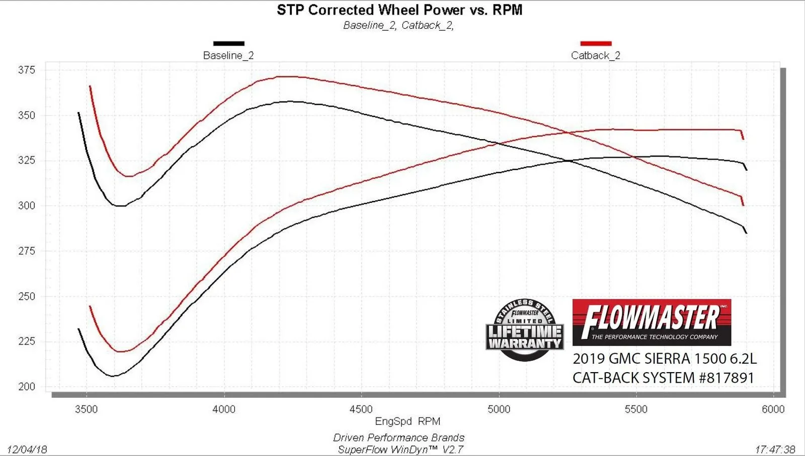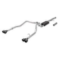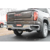 This Flowmaster American Thunder® cat-back dual exhaust system for the 2019-2023 GM Silverado/Sierra 1500 (new body style) trucks with the 6.2L engine and factory dual exhaust, is perfect for the person looking for an aggressive sound level outside the truck, with a moderate interior tone and all the performance benefits you would expect from Flowmaster®. This emissions-legal bolt-on system fits all 6.2L Crew Cab with 5.5-ft and 6.5-ft beds, and all Double Cab with a 6.5-ft bed and factory dual exhaust tailpipes. Features include a mandrel-bent 3.50-inch stainless steel inlet tube flowing into a single 50 Series HD™ muffler, dual 2.50-inch mandrel-bent stainless tailpipes replacing the factory resonators and giving your truck some growl. The tailpipes are finished off with quad 4.00-inch black ceramic coated stainless steel tips that exit in place of the factory bolt-on exhaust bezels giving your truck an aggressive performance style and setting your truck apart from others, sending the message that you would rather lead than follow. Designed for an easy fit, this system includes all necessary parts, detailed instructions and hardware for an easy at home installation. Notes: Fits 147-inch and 157-inch wheelbases with 6.2L engine and factory dual tailpipes.