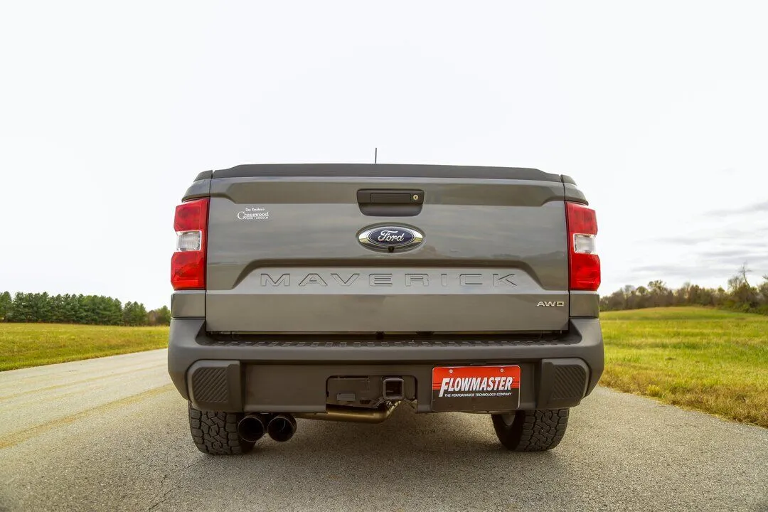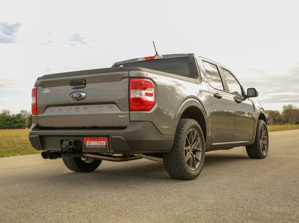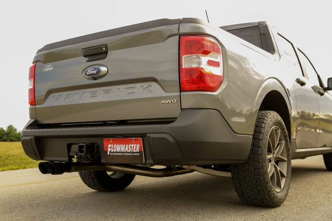 This Flowmaster® American Thunder® cat-back exhaust system for the 2022-2024 Ford Maverick with the 2.0-liter engine is manufactured using durable 409 stainless steel throughout and features 3.00-inch mandrel bent pipes for better exhaust gas flow. This system exits out the rear or side with dual 3.50-inch black stainless steel tips for added style and a custom look. The system uses all the existing factory hanger locations and includes installation instructions and all necessary hardware for an easy installation that you can do at home. Backed by Flowmaster's Lifetime Limited Warranty.