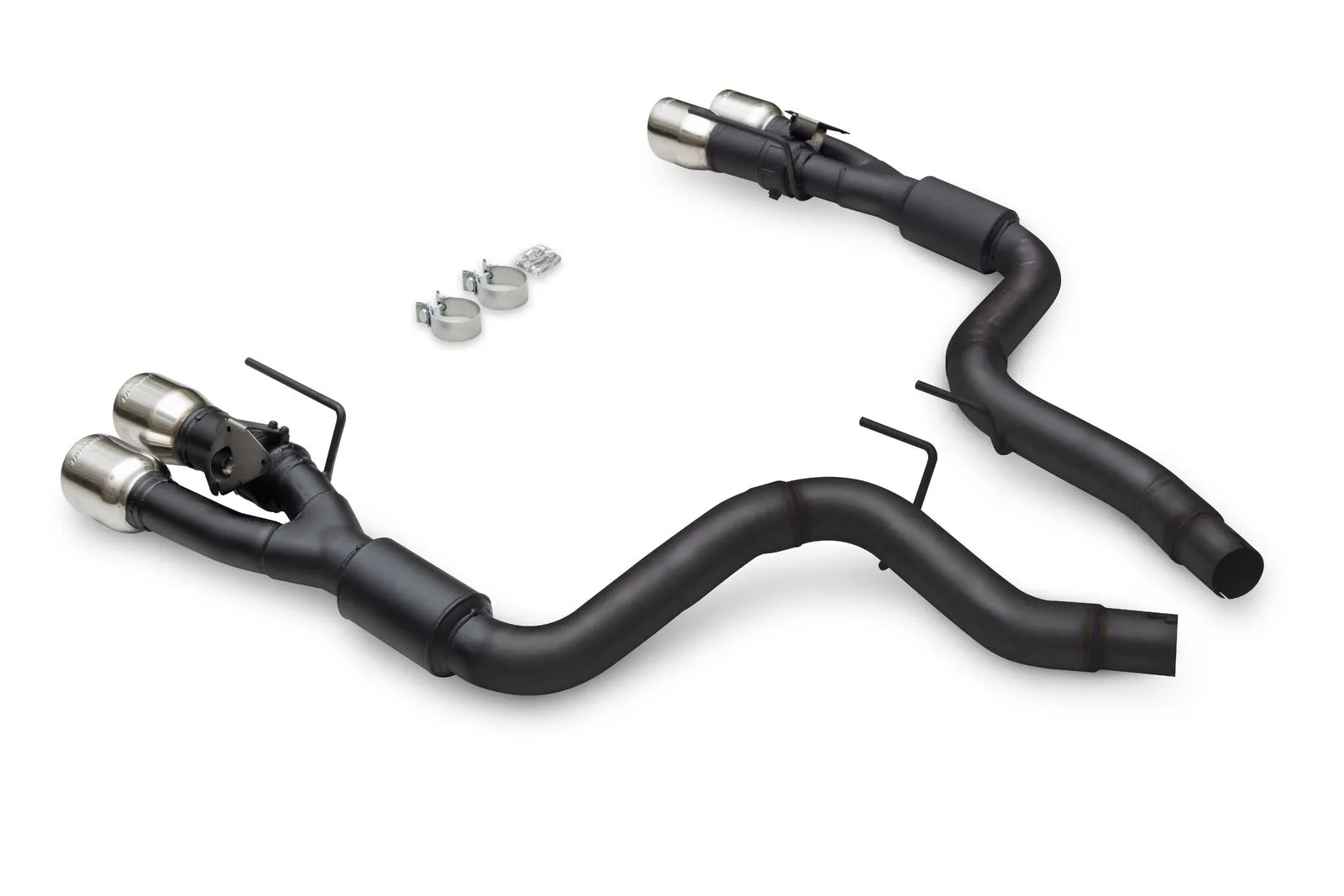 Flowmaster introduces our Outlaw Axle-back exhaust system for the 2024 Ford Mustang GT with the 5.0-liter engine or EcoBoost 2.3-liter engine and the factory performance exhaust option. This system uses the Outlaw style mufflers for an aggressive exhaust tone and increased performance. Maximum dyno gains of up to 17 hp and 17 lb-ft were measured at the rear wheels. 3.00-inch mandrel bent 409 stainless steel tubing is used to maximize exhaust flow and durability. Quad 4.00-inch polished stainless steel tips are used to add a custom look to this iconic vehicle. All of the necessary hardware is included and factory mounting locations are used for an easy installation. Fits both coupes and convertibles. Backed by Flowmaster's Lifetime Limited Warranty.