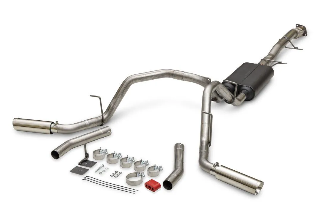 • Dual 3.50-inch polished stainless steal tips add a custom look to the truck