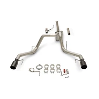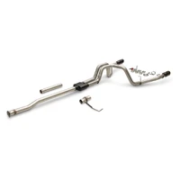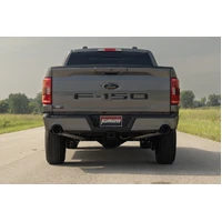 Flowmaster introduces our Outlaw cat-back exhaust system for the 2021-2024 Ford F-150 with the 2.7, 3.5, or 5.0-liter engine and factory dual exit exhaust. The exhaust kit fits PowerBoost and non-hybrid models. This system uses the Super 10 series muffler for an aggressive exhaust tone and increased performance. Maximum dyno gains of 18 hp and 15 lb-ft were measured at the rear wheels. 3.00-inch mandrel bent 409 stainless steel tubing is used to maximize exhaust flow and durability. Dual 4.50-inch black ceramic coated stainless steel tips are used to add a custom look to the truck. All the necessary hardware is included and factory mounting locations are used for an easy installation. Backed by Flowmaster's Lifetime Limited Warranty.