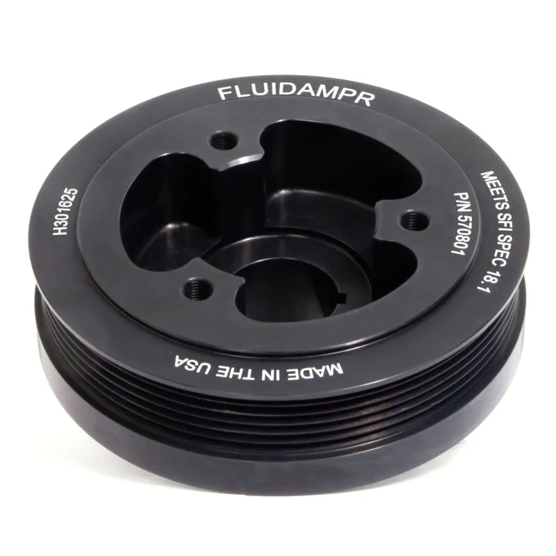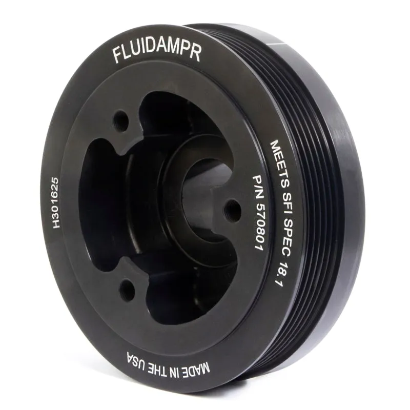 Protect your engine. Modifications can compromise your stock harmonic balancer. Install a Fluidampr performance damper early for best durability. Superior viscous damper design controls harmful torsional vibration across the entire rpm range. Reduce wear on engine components. Reduce risk of crankshaft failure. Improve timing. Unleash lost torque and horsepower. Precision CNC machined and balanced high-grade steel components. Corrosion resistant black zinc finish with engraved timing marks. No maintenance required. Trusted by leading engine builders worldwide. SFI 18.1 certified. Made in USA.