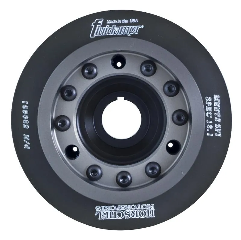 Protect your engine. Modifications can compromise your stock harmonic balancer. Install a Fluidampr performance damper early for best durability. Superior viscous damper design controls harmful torsional vibration across the entire rpm range. Reduce wear on engine components. Reduce risk of crankshaft failure. Improve timing. Unleash lost torque and horsepower. Precision CNC machined and balanced high-grade steel components. Corrosion resistant black zinc finish with engraved timing marks. No maintenance required. Trusted by leading engine builders worldwide. SFI 18.1 certified. Made in USA.