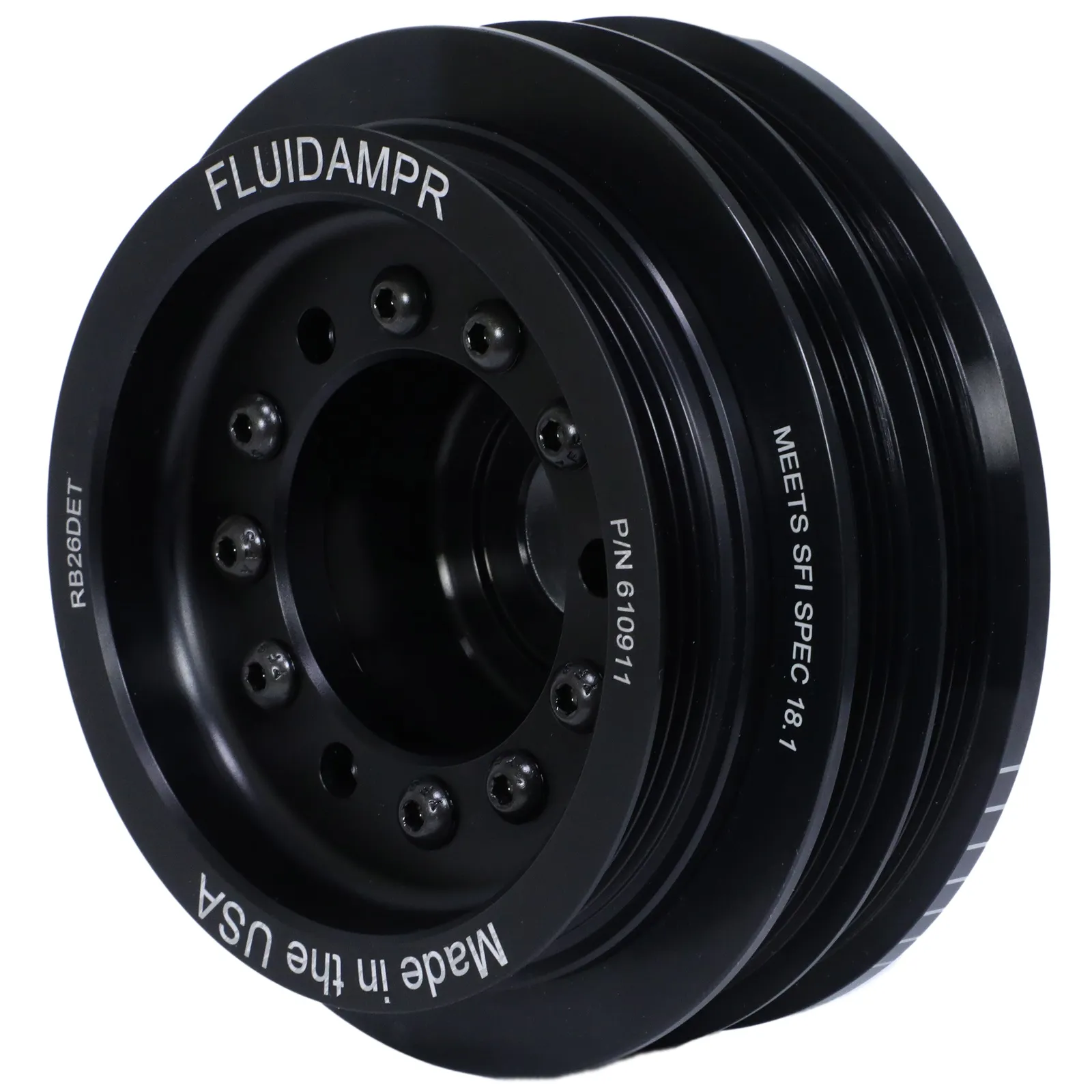 Protect your engine. Modifications can compromise your stock harmonic balancer. Install a Fluidampr performance damper early for best durability. Superior viscous damper design controls harmful torsional vibration across the entire rpm range. Reduce wear on engine components. Reduce risk of crankshaft failure. Improve timing. Unleash lost torque and horsepower. Precision CNC machined and balanced high-grade steel components. Corrosion resistant black zinc finish with engraved timing marks. No maintenance required. Trusted by leading engine builders worldwide. SFI 18.1 certified. Made in USA.