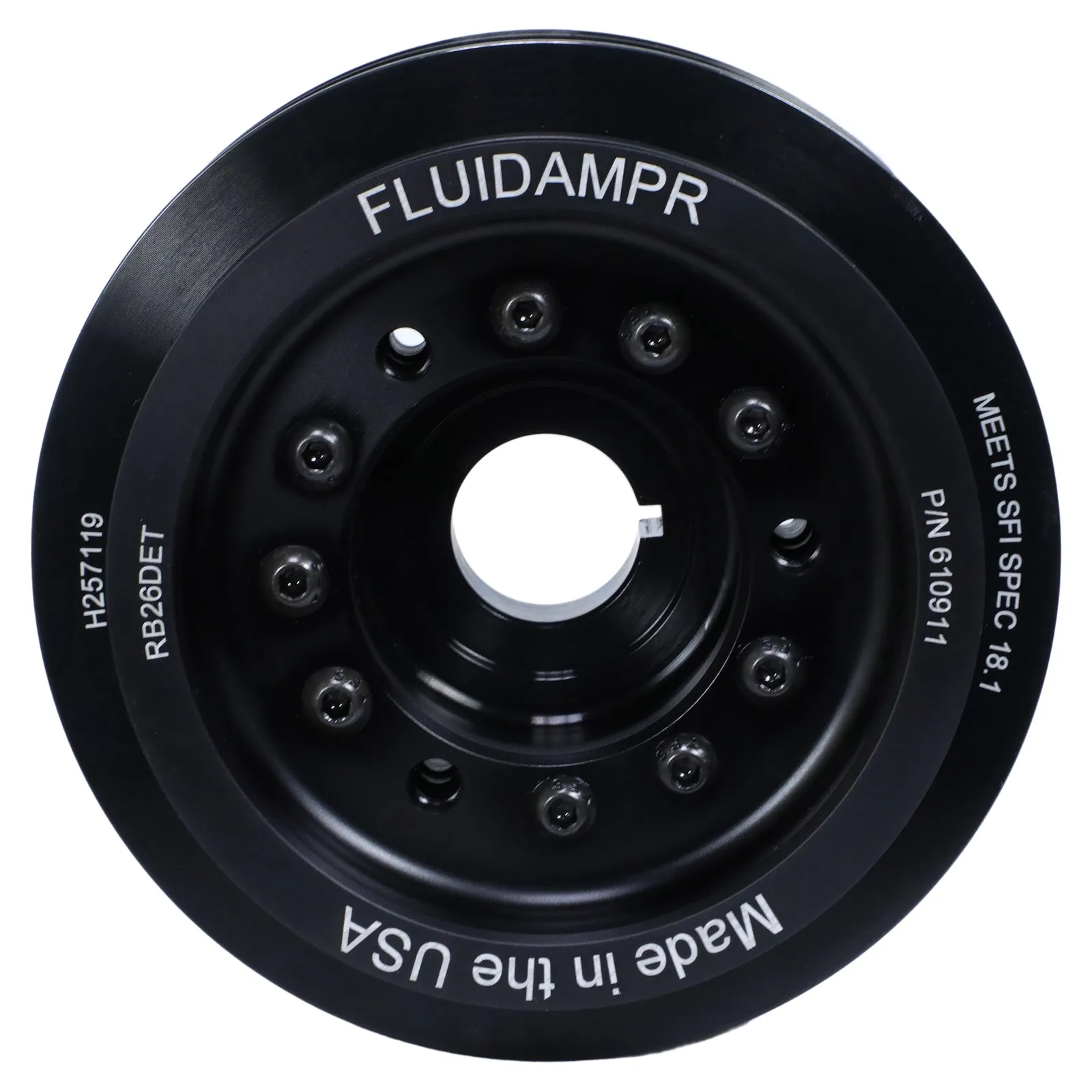 Harmonic Balancer - Fluidampr - Nissan Skyline R33/R34 GTR - 1993-2002 RB26DET phase 2 - Steel - Black Zinc Chromate - 6-1/8" dia - 10.9 lbs - SFI 18.1 - Made in USA - Each