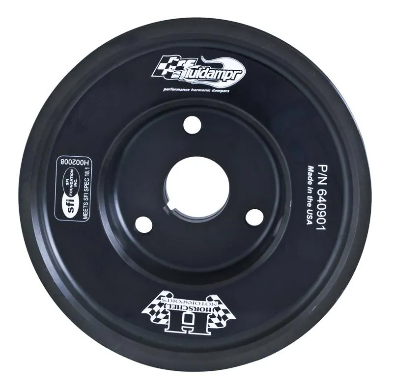 Protect your engine. Modifications can compromise your stock harmonic balancer. Install a Fluidampr performance damper early for best durability. Superior viscous damper design controls harmful torsional vibration across the entire rpm range. Reduce wear on engine components. Reduce risk of crankshaft failure. Improve timing. Unleash lost torque and horsepower. Precision CNC machined and balanced high-grade steel components. Corrosion resistant black zinc finish with engraved timing marks. No maintenance required. Trusted by leading engine builders worldwide. SFI 18.1 certified. Made in USA.