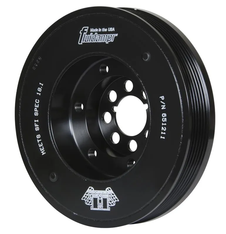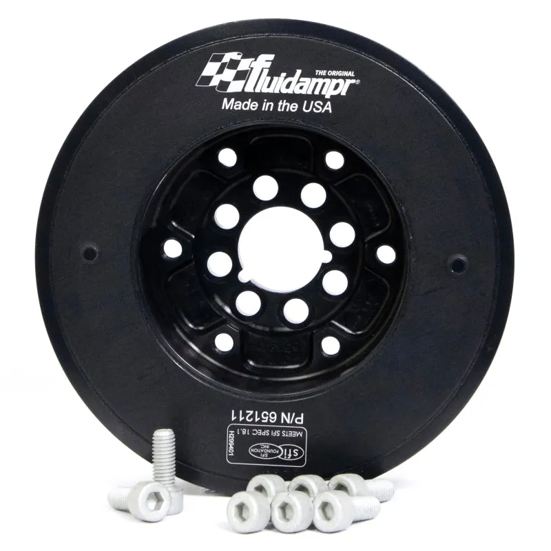 Protect your engine. Modifications can compromise your stock harmonic balancer. Install a Fluidampr performance damper early for best durability. Superior viscous damper design controls harmful torsional vibration across the entire rpm range. Reduce wear on engine components. Reduce risk of crankshaft failure. Improve timing. Unleash lost torque and horsepower. Precision CNC machined and balanced high-grade steel components. Corrosion resistant black zinc finish with engraved timing marks. No maintenance required. Trusted by leading engine builders worldwide. SFI 18.1 certified. Made in USA.