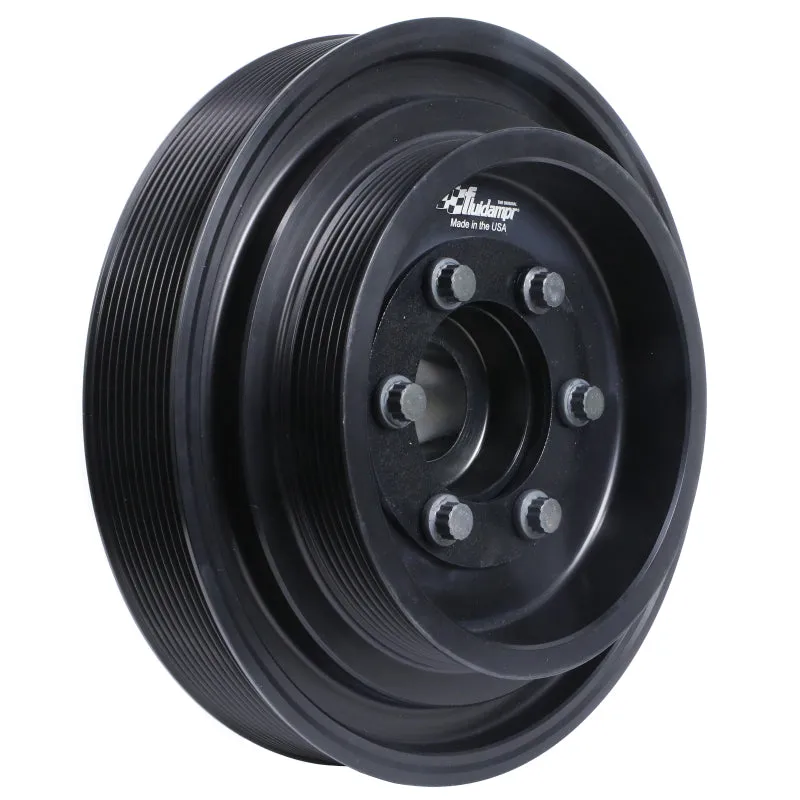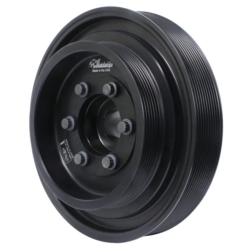 Protect your engine. Modifications can compromise your stock harmonic balancer. Install a Fluidampr performance damper early for best durability. Superior viscous damper design controls harmful torsional vibration across the entire rpm range. Reduce wear on engine components. Reduce risk of crankshaft failure. Improve timing. Unleash lost torque and horsepower. Precision CNC machined and balanced high-grade steel and Aluminum components. Corrosion resistant black anodized pulley and black zinc hub finish with engraved timing marks. No maintenance required. Trusted by leading engine builders worldwide. SFI 18.1 certified. Made in USA.