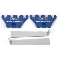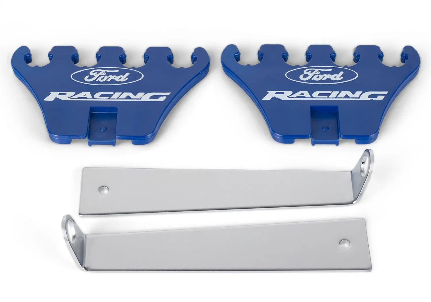 Spark Plug Wire Loom - 4 Wire - Valve Cover Mount - 7-8.5 mm - Chrome Bracket Included - Ford Racing Logo - Plastic - Blue - Clip Style - Small Block Ford - Pair