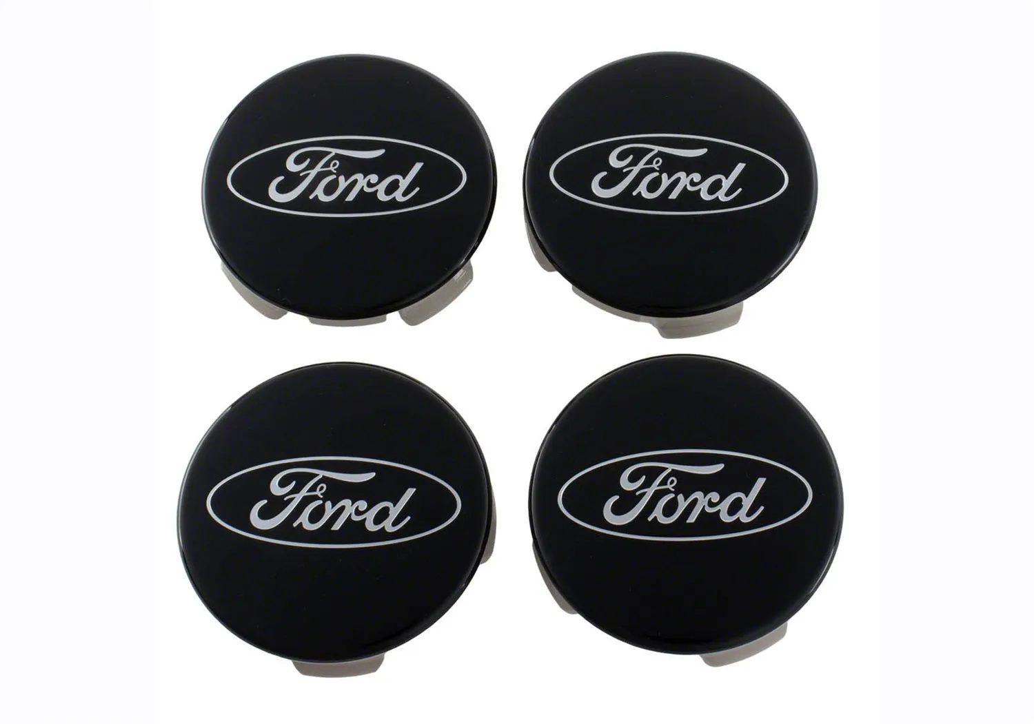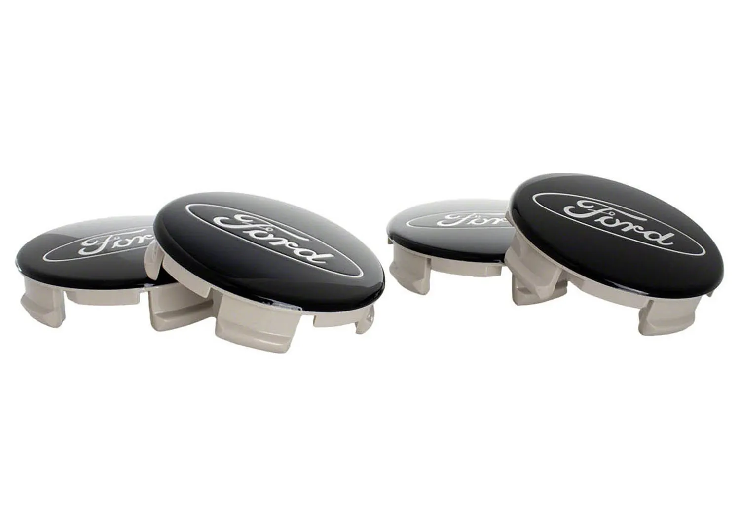 Wheel Center Cap Kit; Chrome Ford Logo Gloss Black Background; Set Of 4;