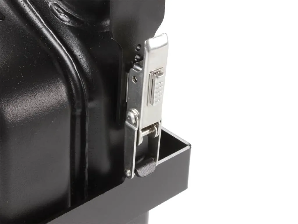 • The adjustable stainless steel latch with safety catch holds your Jerry Can firmly in place over a lifetime of off-road abuse.