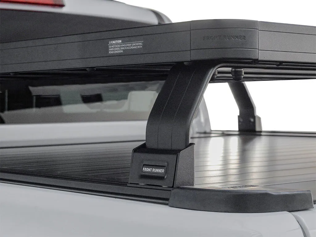 This kit creates a full-size rack that sits above your Pickup Truck's load bed when fitted with a Roll Top Cover. This Slimline II cargo carrying rack kit contains the Slimline II tray (1425mm x 1156mm) and 4 Pickup Roll Top Leg Mounts that fit into the existing factory/OEM tracks in your Roll Top Cover.