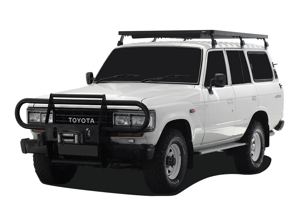 This 2166mm/85.3" long, full-size, Slimline II cargo carrying roof rack kit for the 60 Series Toyota Land Cruiser contains the Slimline II Tray and Wind Deflector, as well as 6 Gutter Mount Legs for mounting the Tray to the vehicle. This taller kit has space for mounting the Front Runner tables or other compatible accessories under the rack. Installs easily with no drilling required.