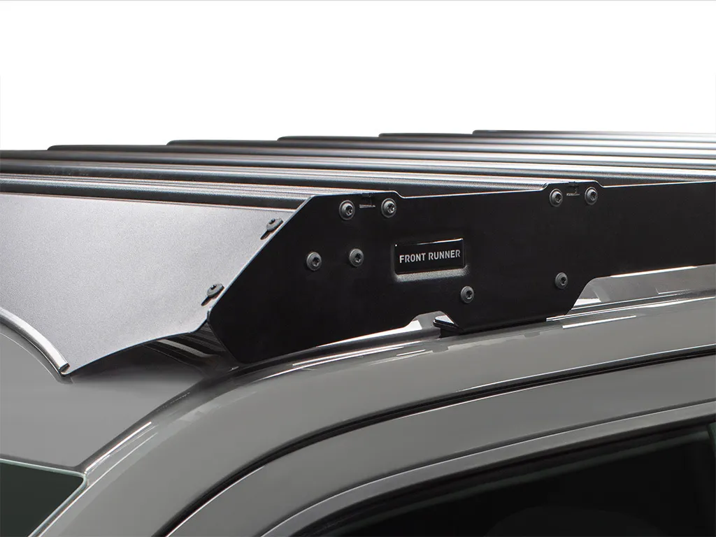 This low profile flat deck Slimsport rack has a load carrying area of 1475mmL (58'' ) x 1405mmW (55,3''). The sleek side rails have integrated mounting feet. Mounting feet also have additional brace brackets for added strength. The high-strength aluminum slats have top and bottom T-slots suitable for all Front Runner top mount accessories. Effortlessly access your Slimsport cargo with the . Easily add on the (sold separately) for all Front Runner side mount accessories. The included standard full fairing with rubber edge trim makes the rack ultra-quiet and allows full operation of the moonroof Need a lightbar? The optional (sold separately) has a 40'' cutout to allow the use of (sold separately). Fitment guide and all mounting hardware included. is required for installation (sold separately). Drilling required for fitment (all hardware included). Note: Under Rack Tables and some side mount accessories such as and are not compatible with the Slimsport rack kit range. Note: Compatible with 'shark fin' antenna, not compatible with 'puck style' antenna.
