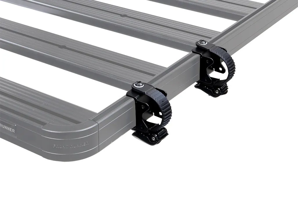 • These brackets install along the Slimline II Roof Rack Tray side rails in minutes. No drilling required.