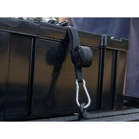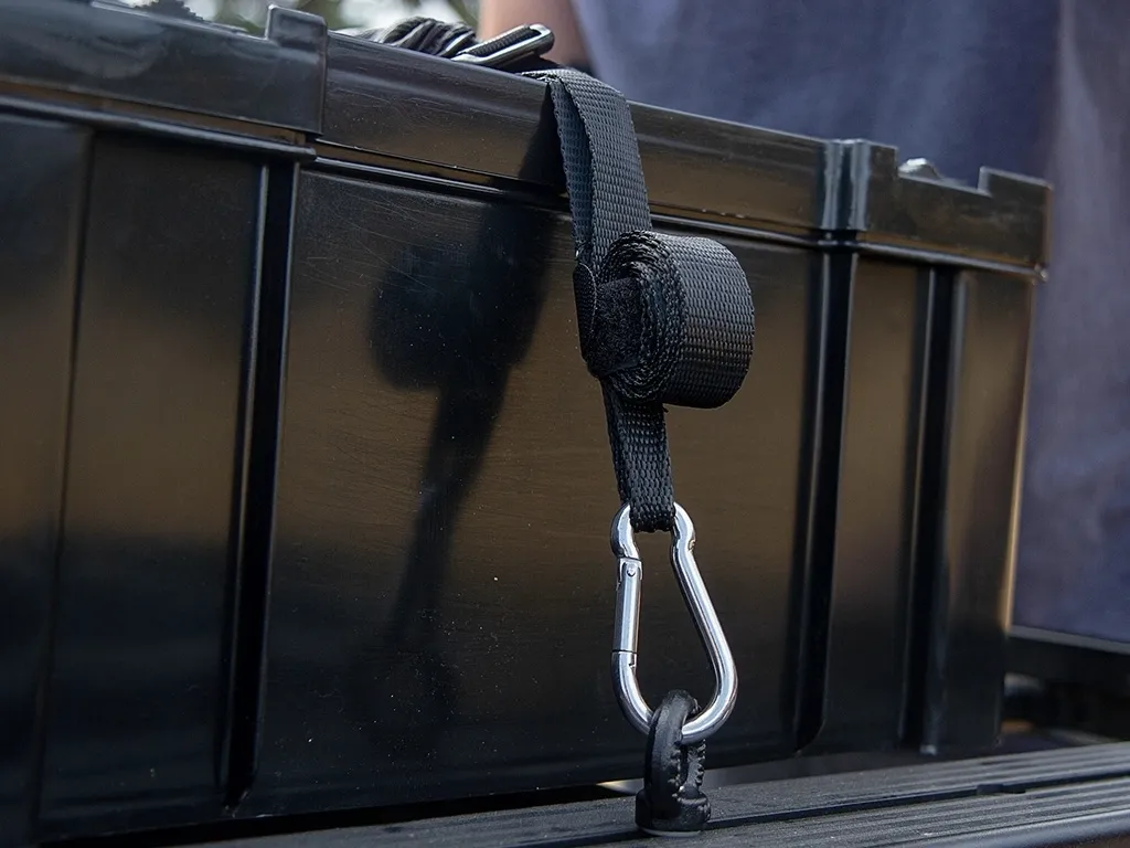 HOW TO USE:Hook to the Front Runner Roof Rack Black Tie Down Rings / Eye Nuts or Stainless Steel Tie Down Rings or loop around the slats or side profiles and fasten the Stratchit to itself.You can even remove the carabiner and loop the Stratchit through itself - to fasten around any roof rack rail, railing, pole, bumper, tire carrier.... etc.WARNINGS:Please read and follow all these warnings carefully -- failure to do so could result in cargo damage and could cause injury.Do not over tighten. Use only hand leverage.Never stand in the direct path of the Stratchit when tensioning to prevent the risk of injury should the strap become detached.Loads settle. Check Stratchit after first 10 miles of driving and each 50 miles thereafter.User to evaluate working load and requirements. DO NOT use to support human weight under any circumstance.Check the Stratchit regularly for signs of deterioration or damage.To ensure longevity, please remove the Stratchit from the sun and weather elements when not in use.Make sure that the points of attachment to the vehicle or trailer are of sufficient strength to withstand the maximum loading that will be produced during use.Take additional care if securing large objects that may be subject to aerodynamic lifting forces caused by bumps. Always use the appropriate number of straps and drive at reduced speeds to minimize the effects of these forces.