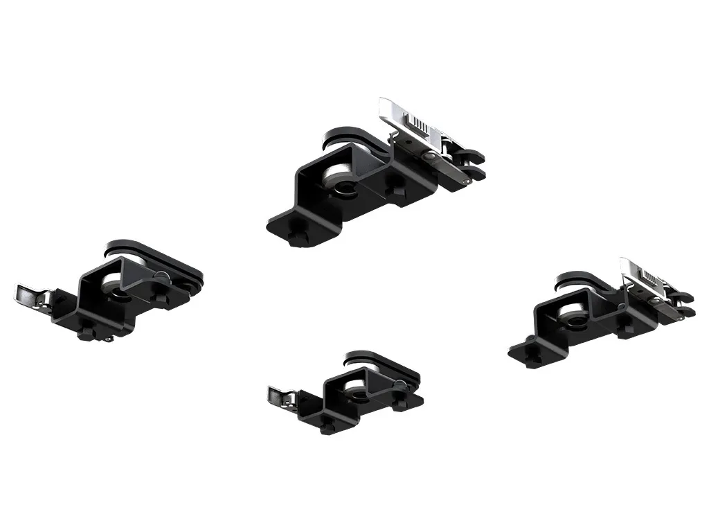 • These black powder coated plates slide into the tent extrusion and bolt onto the latch bracket and self-aligning bushes.