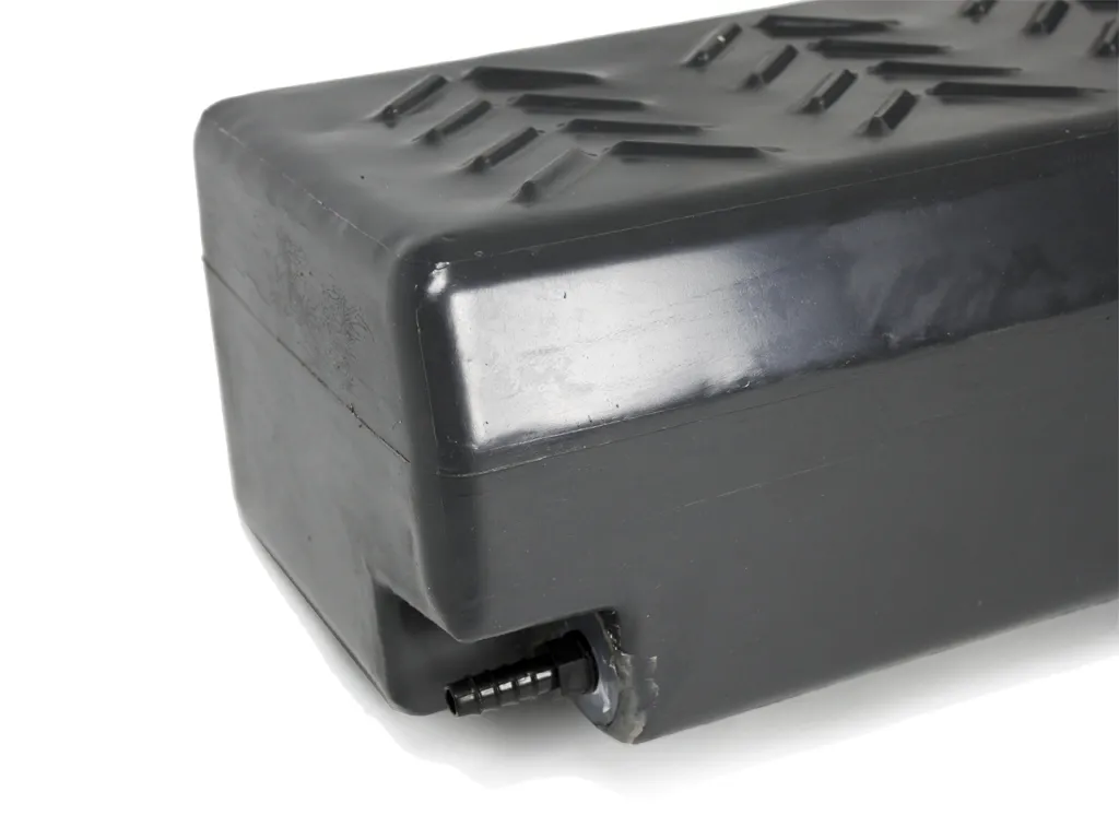 • The tank has plastic pipe fittings on each side for connection of a hose and tap. (Hose kits and taps are not included)