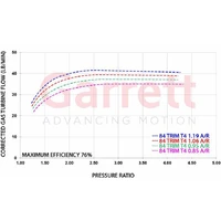 G40 turbine housing kits are available in four A/R. 0.85 A/R | 0.95 A/R | 1.06 A/R | 1.19 A/R stainless steel housings with T4 divided inlet flange. The largest 1.19 A/R T4 turbine housing flows 43 LBS/MIN of air which is a 16% increase over the GTX4088R turbine wheel.
