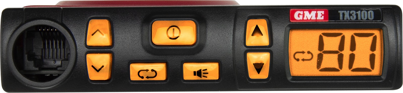 The TX3100DP, with its front mounted controls, is designed for unobtrusive mounting in modern vehicles and features a built-in speaker housed within an extremely compact case.