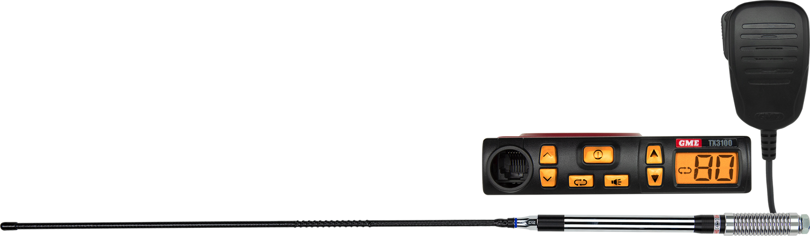 Coupling the TX3100DP UHF CB radio with the AE4018K2 high performance UHF CB antenna and MB407SS mounting bracket, the TX3100VP is the complete package.
