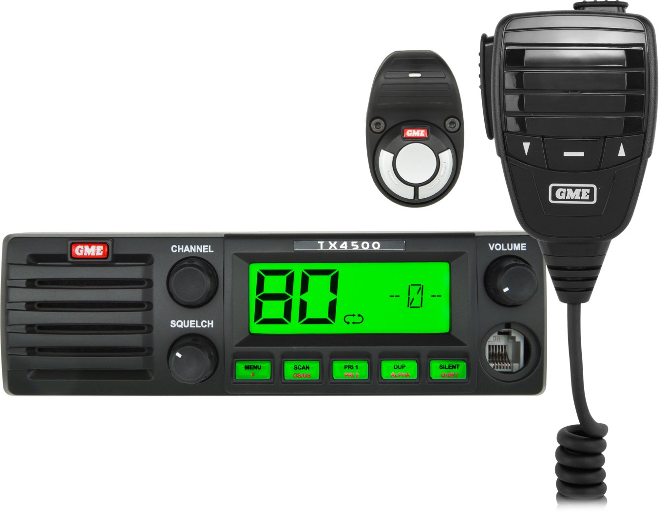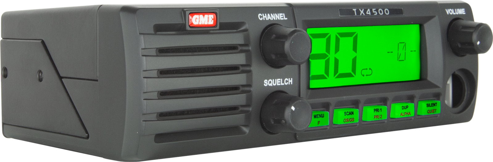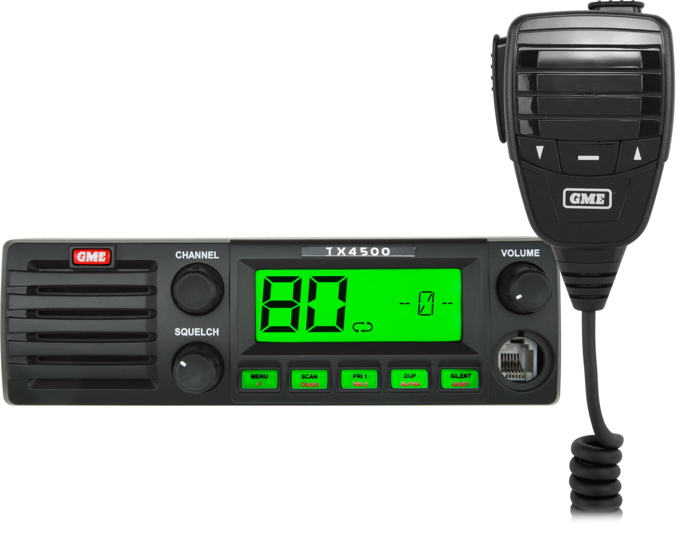 Featuring a rugged die-cast metal chassis and robust professional-grade microphone with magnetic mounting bracket, the TX4500S is the radio of choice for agricultural machinery, plant equipment and heavy vehicle operators.