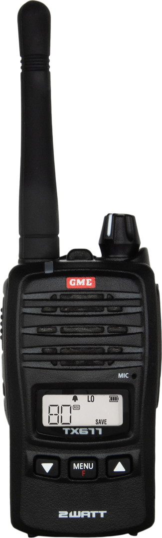 The TX677QP is a compact and lightweight mechanical design, with up to 20 hours battery life, convenient USB charging, a rotary power/ volume control for easy operation, switchable transmission power (2/ 0.5 watt), and a user programmable scan function, the TX677 is a serious performer in a compact chassis.