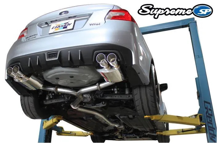 The Supreme SP for the (VA) Subaru Sedan features large dual oval mufflers and quad staggered tips in a "tucked-away" layout, for maxium muffler ground clearance. Large 76mm (3”) piping is carefully routed around the rear differential to a centralized Y-section for more even flow. This creates and improved performance with exceptional sound for both the EJ powered STI and FA powered WRX applications. The system is finished off with classic quad Supreme SP 89mm laser engraved GReddy tips. Like all GReddy Supreme SP systems the fully hand-welded 304 Stainless-Steel exhaust carries a Limited Lifetime Warranty.