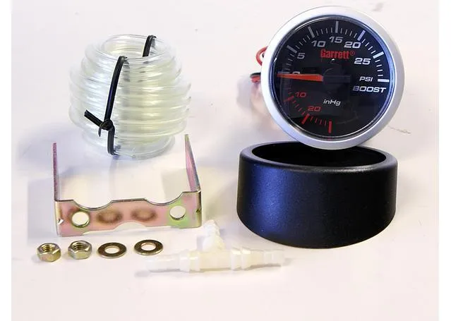 The Garrett Mechanical Boost Gauge is the perfect addition to your interior for the important job of accurately monitoring your boost levels. The gauge has a sleek design and features a black face, white backlit numbers and brushed aluminium ring. The gauge monitors boost from -30 Hg Vacuum to +30psi boost pressure.