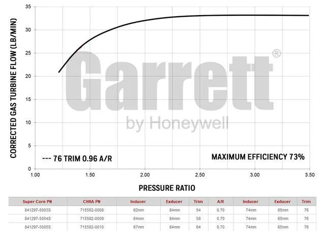 The GTW3884R Supercore is a direct drop in interchange with the T04S, and T04Z, or ANY turbocharger using a "P-Trim" Turbine Wheel.