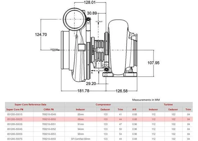 The GTX5533R GEN II Supercore fits directly into any existing GT5518R, GT5533R, GTX5518R and GTX5533R turbine housings