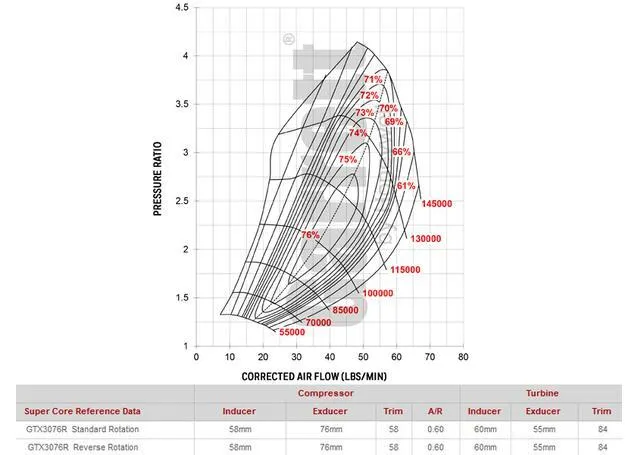 GTX GEN II Reverse Rotation turbochargers are the newest product offering from Garrett by Honeywell. Available in four sizes: the GTX3071R, GTX3076R, GTX3576R, and GTX3582R Reverse Rotation turbochargers are ideal for twin turbo, V engine applications and for fabricators that want perfect symmetry to be displayed in the engine compartment. The Reverse Rotation turbos can also be used in single turbo applications where packaging is an issue.
