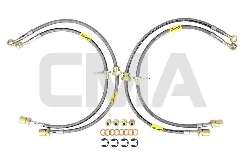 Eliminate "spongy" brake pedal feel, reduce braking distance, and increase the safety and drivability of your car by using Goodridge race proven, D.O.T. approved, stainless steel braided and Teflon lined brake lines that are legal for use on any public road. Stainless Steel braided lines do not expand under pressure like the OEM rubber lines, resulting in a more solid braking feel and response. All G-Stop brake line kits come with all necessary OEM replacement hardware for fast, easy, bolt-on installations.