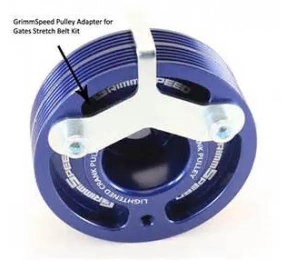 GrimmSpeed created a unique adapter that allows you to use the Gates Stretch Belt Kit for the 2008+ Impreza with the GrimmSpeed Pulley. Other manufacturers tell you to use the Gates kit on the 2008+ Imprezas but they fail to mention that the Gates Kit will not work on their pulley. They have solved this problem for their pulley.