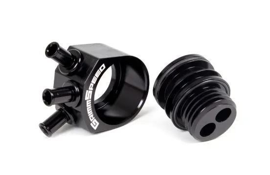 The GrimmSpeed™ Air/Oil Separator for Subaru vehicles has a unique patent pending design that allows you to maintain your PCV Valve while separating the oil out of the crankcase and head ventilation air! Our AOS will allow your engine to run more efficiently due to the separation of oil from the intake system. When there is oil in your system, the result is 1) reduced fuel octane 2) higher chance of engine knock(detonation) 3) worse emissions 4) higher oil consumption. Our Air/Oil Separator will help all of these problems.