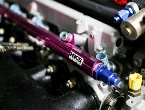 HKS Fuel Rail Upgrade kits are high-performance fuel delivery units that are designed to properly supply the additional fuel needed for high boost/performance applications. HKS Fuel Rail Upgrade kits are direct bolt-on replacements of factory fuel rails, and allow for larger top-feed injectors to be added. HKS Fuel Rails are machined out of aluminum and anodized HKS signature purple for durability and visual appeal.