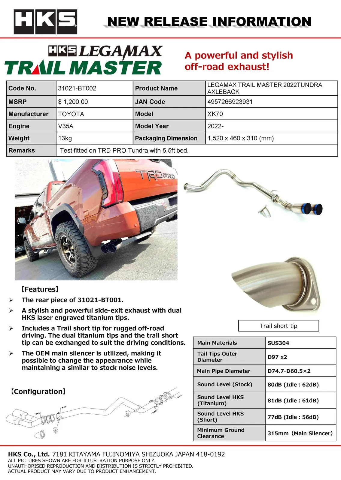 HKS LEGAMAX TRAIL MASTER 2022TUNDRA AXLEBACK